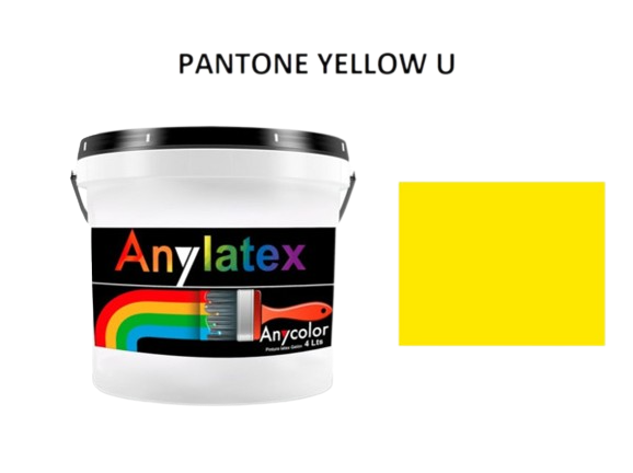 PINTURA ARQUITECTONICA : TIPO: LATEX ACABADO: MATE PARA INTERIOR/EXTERIOR COLOR: PANTONE YELLOW U DE 4L RENDIMIENTO: 51-55 m2 LAVABILIDAD: MEDIA UNIDAD G.F.: 1 ANIO ANYCOLOR 0200016078030