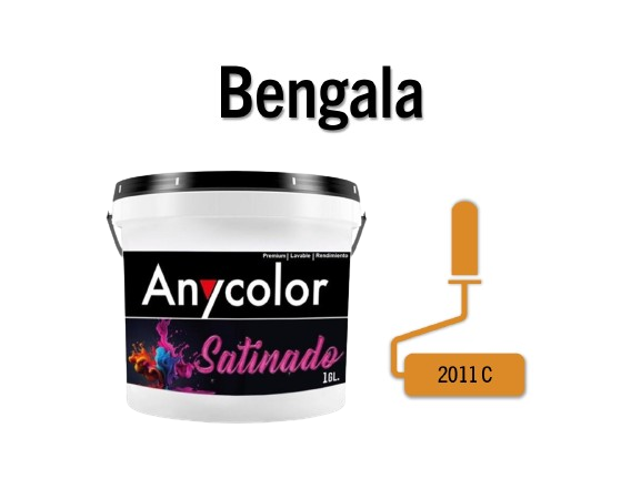 PINTURA ARQUITECTONICA : TIPO: LATEX ACABADO: SATINADO PARA INTERIOR/EXTERIOR COLOR: PANTONE 2011 C DE 1GL RENDIMIENTO: 26-30 m2 LAVABILIDAD: ALTA UNIDAD G.F.: 1 ANIO ANYCOLOR 1513A01-BENGALA