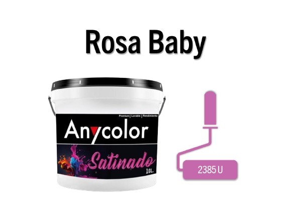 PINTURA ARQUITECTONICA : TIPO: LATEX ACABADO: SATINADO PARA INTERIOR/EXTERIOR COLOR: PANTONE 2385 U DE 1GL RENDIMIENTO: 26-30 m2 LAVABILIDAD: ALTA UNIDAD G.F.: 1 ANIO ANYCOLOR 1513A01-ROSABABY