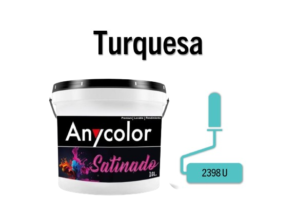 PINTURA ARQUITECTONICA : TIPO: LATEX ACABADO: SATINADO PARA INTERIOR/EXTERIOR COLOR: PANTONE 2398 U DE 1GL RENDIMIENTO: 26-30 m2 LAVABILIDAD: ALTA UNIDAD G.F.: 1 ANIO ANYCOLOR 1513A01-TURQUESA