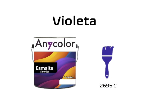 PINTURA ARQUITECTONICA : TIPO:ESMALTE ACABADO: BRILLANTE PARA INTERIOR/EXTERIOR COLOR: PANTONE 2695 C DE 1GL RENDIMIENTO: 61-65 m2 LAVABILIDAD: ALTA UNIDAD G.F.: 1 ANIO ANYCOLOR 151901-2695C