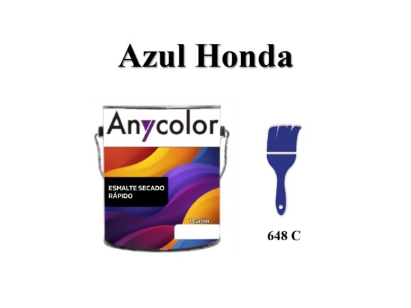 PINTURA ARQUITECTONICA : TIPO:ESMALTE ACABADO: BRILLANTE PARA INTERIOR/EXTERIOR COLOR: PANTONE 648 C DE 1GL RENDIMIENTO: 56-60 m2 LAVABILIDAD: ALTA UNIDAD G.F.: 1 ANIO ANYCOLOR 152801-GLOSS-AZUL-HONDA