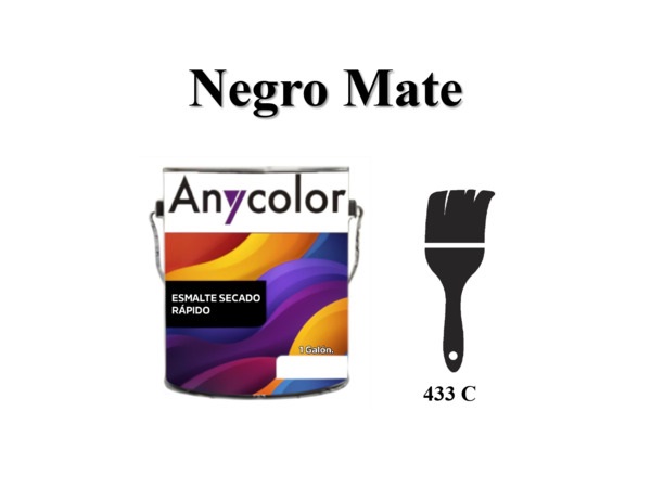 PINTURA ARQUITECTONICA : TIPO:ESMALTE ACABADO: BRILLANTE PARA INTERIOR/EXTERIOR COLOR: PANTONE 433 C DE 1GL RENDIMIENTO: 56-60 m2 LAVABILIDAD: ALTA UNIDAD G.F.: 1 ANIO ANYCOLOR 152801-GLOSS-NEGRO-MATE