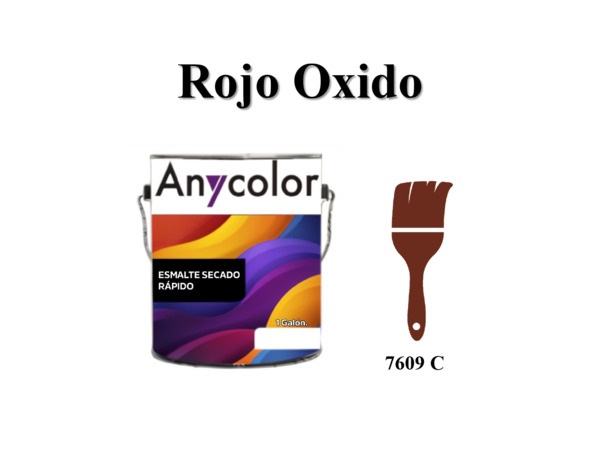 PINTURA ARQUITECTONICA : TIPO:ESMALTE ACABADO: BRILLANTE PARA INTERIOR/EXTERIOR COLOR: PANTONE 7609 C DE 1GL RENDIMIENTO: 56-60 m2 LAVABILIDAD: ALTA UNIDAD G.F.: 1 ANIO ANYCOLOR 152801-GLOSS-ROJO-OXIDO