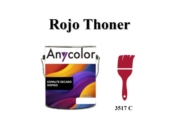 PINTURA ARQUITECTONICA : TIPO:ESMALTE ACABADO: BRILLANTE PARA INTERIOR/EXTERIOR COLOR: PANTONE 3517 C DE 1GL RENDIMIENTO: 56-60 m2 LAVABILIDAD: ALTA UNIDAD G.F.: 1 ANIO ANYCOLOR 152801-GLOSS-ROJO-THONER