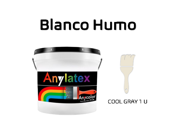 PINTURA ARQUITECTONICA : TIPO: LATEX ACABADO: MATE PARA INTERIOR/EXTERIOR COLOR: PANTONE COOL GRAY 1 U DE 4L RENDIMIENTO: 31-35 m2 LAVABILIDAD: MEDIA UNIDAD G.F.: 1 ANIO ANYCOLOR ANYLATEX-COOLGRAY1U
