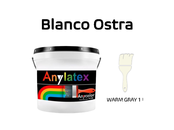 PINTURA ARQUITECTONICA : TIPO: LATEX ACABADO: MATE PARA INTERIOR/EXTERIOR COLOR: PANTONE WARM GRAY 1 U DE 4L RENDIMIENTO: 31-35 m2 LAVABILIDAD: MEDIA UNIDAD G.F.: 1 ANIO ANYCOLOR ANYLATEX-WARMGRAY1U