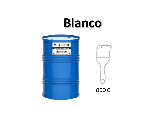 PINTURA ARQUITECTONICA : TIPO:ESMALTE ACABADO: BRILLANTE PARA INTERIOR/EXTERIOR COLOR: PANTONE 000C DE 55GL RENDIMIENTO: 2255-2475 m2 LAVABILIDAD: ALTA UNIDAD G.F.: 1 ANIO ANYCOLOR PC-0100015010046