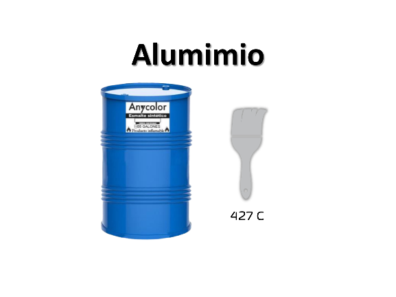 PINTURA ARQUITECTONICA : TIPO:ESMALTE ACABADO: BRILLANTE PARA INTERIOR/EXTERIOR COLOR: PANTONE 427 C DE 55GL RENDIMIENTO: 2255-2475 m2 LAVABILIDAD: ALTA UNIDAD G.F.: 1 ANIO ANYCOLOR PC-0100015030046