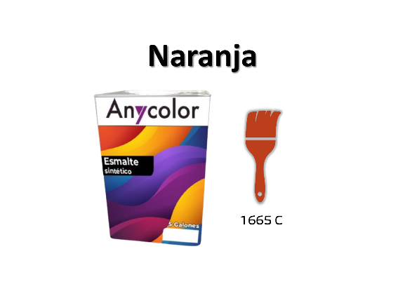 PINTURA ARQUITECTONICA : TIPO:ESMALTE ACABADO: BRILLANTE PARA INTERIOR/EXTERIOR COLOR: PANTONE 1665 C DE 5GL RENDIMIENTO: 221-225 m2 LAVABILIDAD: ALTA UNIDAD G.F.: 1 ANIO ANYCOLOR PC-0100015120027