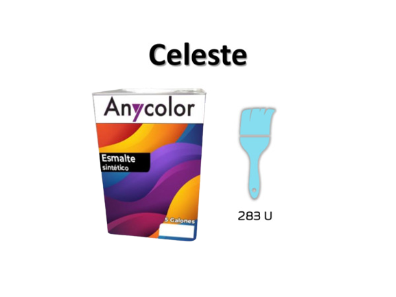 PINTURA ARQUITECTONICA : TIPO:ESMALTE ACABADO: BRILLANTE PARA INTERIOR/EXTERIOR COLOR: PANTONE 283 U DE 5GL RENDIMIENTO: 221-225 m2 LAVABILIDAD: ALTA UNIDAD G.F.: 1 ANIO ANYCOLOR PC-0100015240027