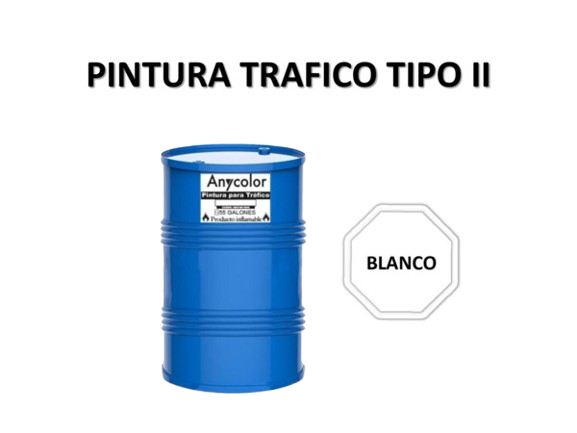 PINTURA VIAL : TIPO: ALQUIDICO COLOR: BLANCO DE RENDIMIENTO ENTRE:6105-6325 ML PRESENTACION: 55 GLS UNIDAD DILUYENTE: SOLVENTE G.F.: 1 ANIO ANYCOLOR 0300018010046-TTPII