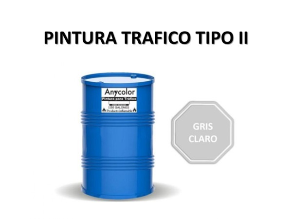 PINTURA VIAL : TIPO: ALQUIDICO GRIS CLARO DE RENDIMIENTO ENTRE:6105-6325 ML PRESENTACION: 55 GLS UNIDAD DILUYENTE: SOLVENTE G.F.: 1 ANIO ANYCOLOR 0300018060046-TTP