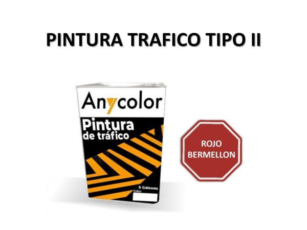 PINTURA VIAL : TIPO: ALQUIDICO ROJO BERMELLON DE RENDIMIENTO ENTRE:555-575 ML PRESENTACION: 5 GLS UNIDAD DILUYENTE: SOLVENTE G.F.: 1 ANIO ANYCOLOR 0300018188027-TTP