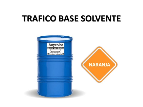 PINTURA VIAL : TIPO: ALQUIDICO NARANJA DE RENDIMIENTO ENTRE:6105-6325 ML PRESENTACION: 55 GLS UNIDAD DILUYENTE: SOLVENTE G.F.: 1 ANIO ANYCOLOR 0300022080046-SOLV