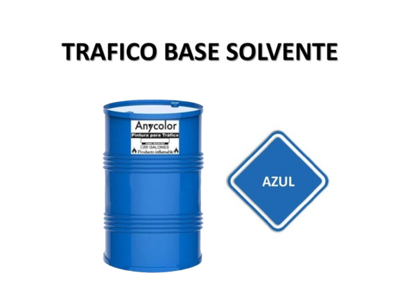 PINTURA VIAL : TIPO: ALQUIDICO COLOR: AZUL DE RENDIMIENTO ENTRE:6105-6325 ML PRESENTACION: 55 GLS UNIDAD DILUYENTE: SOLVENTE G.F.: 1 ANIO ANYCOLOR 0300022200046-SOLV