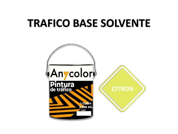 PINTURA VIAL : TIPO: ALQUIDICO CITRON DE RENDIMIENTO ENTRE:111-115 ML PRESENTACION: 1 GL UNIDAD DILUYENTE: SOLVENTE G.F.: 1 ANIO ANYCOLOR 0300022270024-SOLV
